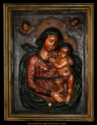 Bottega toscana della fine del '400, calco verosimilmente da marmo di Benedetto da Maiano, Firenze. Madonna con Bambino e cherubini