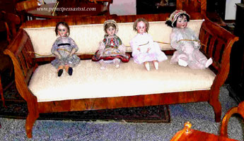 | Clicca sulla foto per i dettagli - I divani - (Sofa - Kanapee) (Click to enlarge) - Tutti i nostri divani antichi, quando necessario, sono ritappezzati con la tecnica originale antica, con telaio tirato manualmente senza uso di gommapiuma (non esistente all'epoca). P.S. restauro operato a regola d'arte antica. |