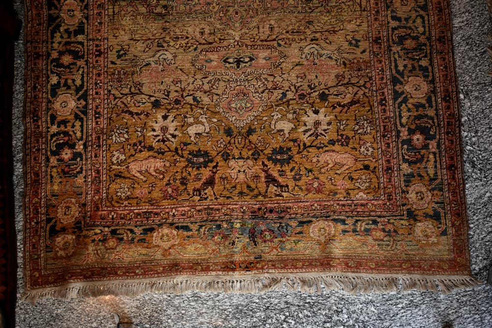 animali carnivori. Medaglione centrale tipico della provenienza. D'eleganza imperiale ma con tratti ancora tribali d'antica ispirazione Safavide che ne circoscrivono la verosimile realizzazione