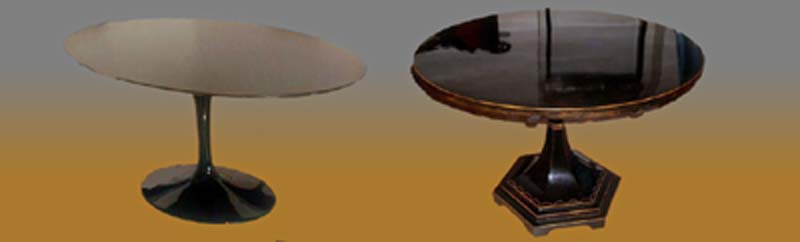 Osserva il confronto fra questi due oggetti (nostra ricostruzione fotografica): A sinistra, un tavolo di moderna produzione dal prestigioso design, disegnato negli anni '50 dal famoso architetto Saarinen. A destra un nostro tavolo originale impero - primo biedermeier viennese del 1810 c.a (vedi nella sezione "tavoli da salotto" di questo sito). E' incredibile ed evidente la modernità del biedermeier viennese, come è anche evidente che il designer contemporaneo ad esso s'è ispirato.