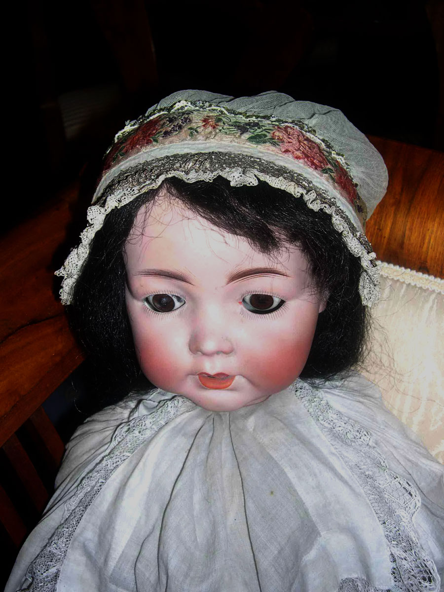 Rara bambola antica con testa in biscuit bebé carachtér Hertel Schwabn. 98, con vestiti originali e capelli naturali. Integralmente originale. Germania 1900 c.a Manifattura che produceva bambole di qualità per uno stampo raro dalle reali dimensioni. Alt.cm.70
