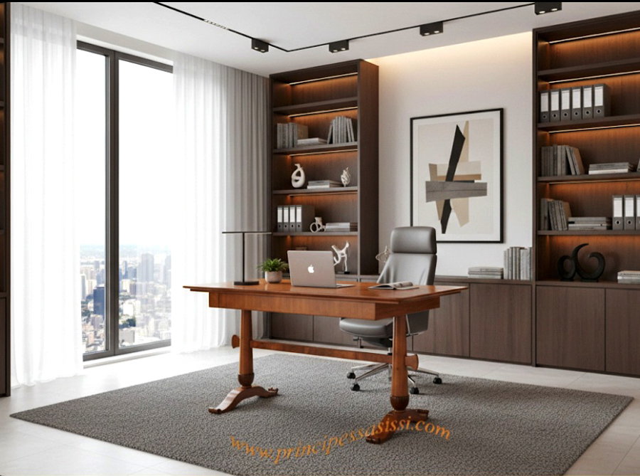 Osserva la foto a seguire, che è una simulazione informatica di fantasia ove l'opera è immaginata in un contesto d'arredamento moderno d'alta gamma. Emergono una "modernità", una luminosità ed un'astrazione sorprendenti per un opera concepita oltre due secoli fa, oltre che un gran tocco di classe ed eleganza all'insieme. L'alta ebanisteria antica viennese, dalla sobria e minimale eleganza, dalle essenze pregiate e chiare, si lega molto alle linee dell'arredo moderno.
