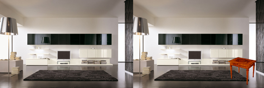 Vienna 1770 c.a. Raro tavolo da gioco in museali condizioni di conservazione, d'integrità assoluta ed in prima patina, del periodo del classicismo. E' magistralmente intarsiato a motivi geometrici e floreali, con medaglione centrale intarsiato a nastri, ghirlande e note musicali delineate a pennino. Dettagli e ombreggiature realizzati con la tecnica della pirografia. E' lastronato e intersiato nelle essenze della piuma di noce, piuma di ciliegio, acero, acero tinto, bois de rose o tasso, nonché prugno o amaranto. E' mobile d'alta ebanisteria austriaca dalle squisite dimensioni. Con quattro cassetti laterali anch'essi originali, destinati al contenimento delle carte e fiches dell'epoca. In prima patina come già scritto, con finitura a gommalacca a tampone con tecnica di standard museale. D'integrità assoluta certificata. Provenienza : famiglia nobiliare dell'Europa Centrale. Altezza cm.78, piano cm.90 x 70. Guarda come questo eccezionale tavolo antico dalle sobrie ed eleganti linee si abbina all'arredamento moderno d'alto livello (a fondo pagina - simulazione da noi realizzata elettronicamente - gli altri oggetti moderni non sono nostri e\o in vendita da noi - solo un esempio "creativo" d'abbinamento - sono fatti salvi i diritti dei terzi ) |